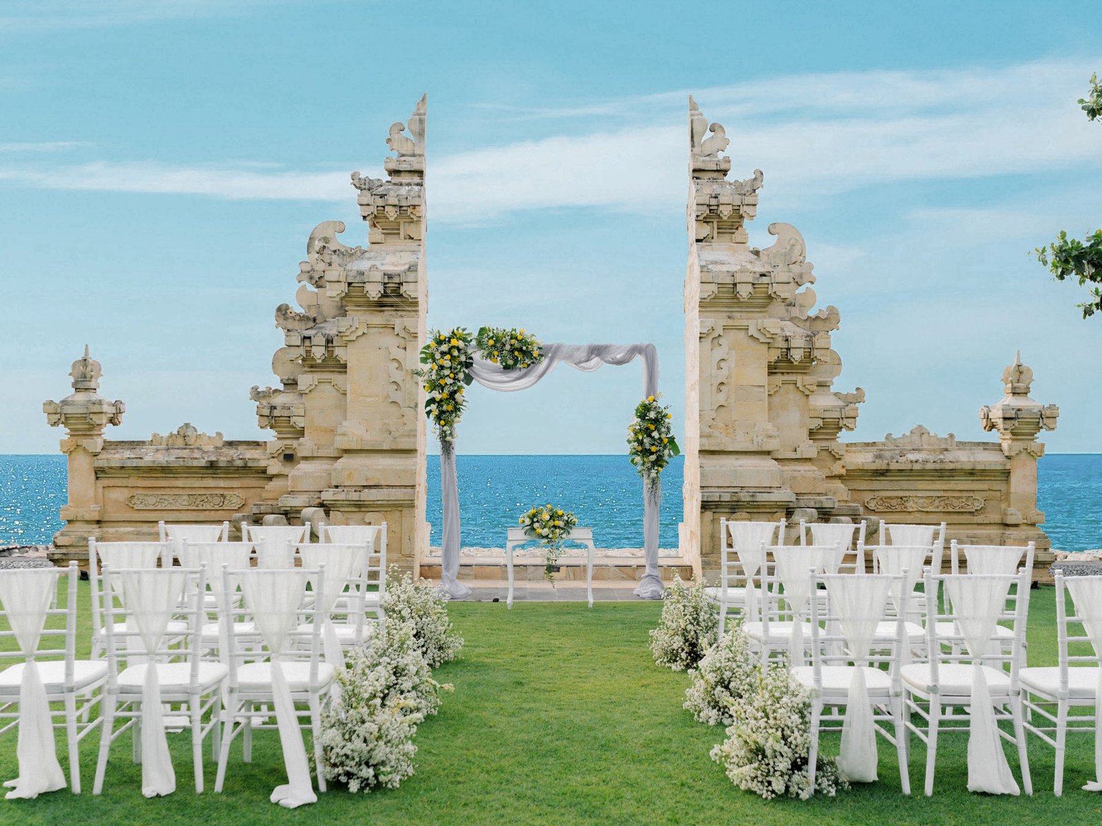 Discovery Kartika Plaza Hotel will be an ideal venue for your wedding as it offers the island’s most comprehensive range of 5-star facilities and services. The wedding location is set at our lush tropical gardens, facing the ocean, with the beach gate as the romantic backdrop. We mostly arrange a wedding just in the afternoon, just before the sun goes down. Sunset is always magical in this particular setting. Your guests have the option of staying at the hotel-wide range selection of rooms, suites, or beach villas. Indulge in the enchanting allure of Bali as you embark on a journey to plan your dream wedding in paradise. Imagine a celebration that exudes timeless beauty, romance, and an inviting ambiance that will forever be etched in your heart. Welcome to our Tropical Blissful Wedding, meticulously designed for couples seeking to unite their love amidst the captivating charm of one of Bali’s most sought-after destinations.