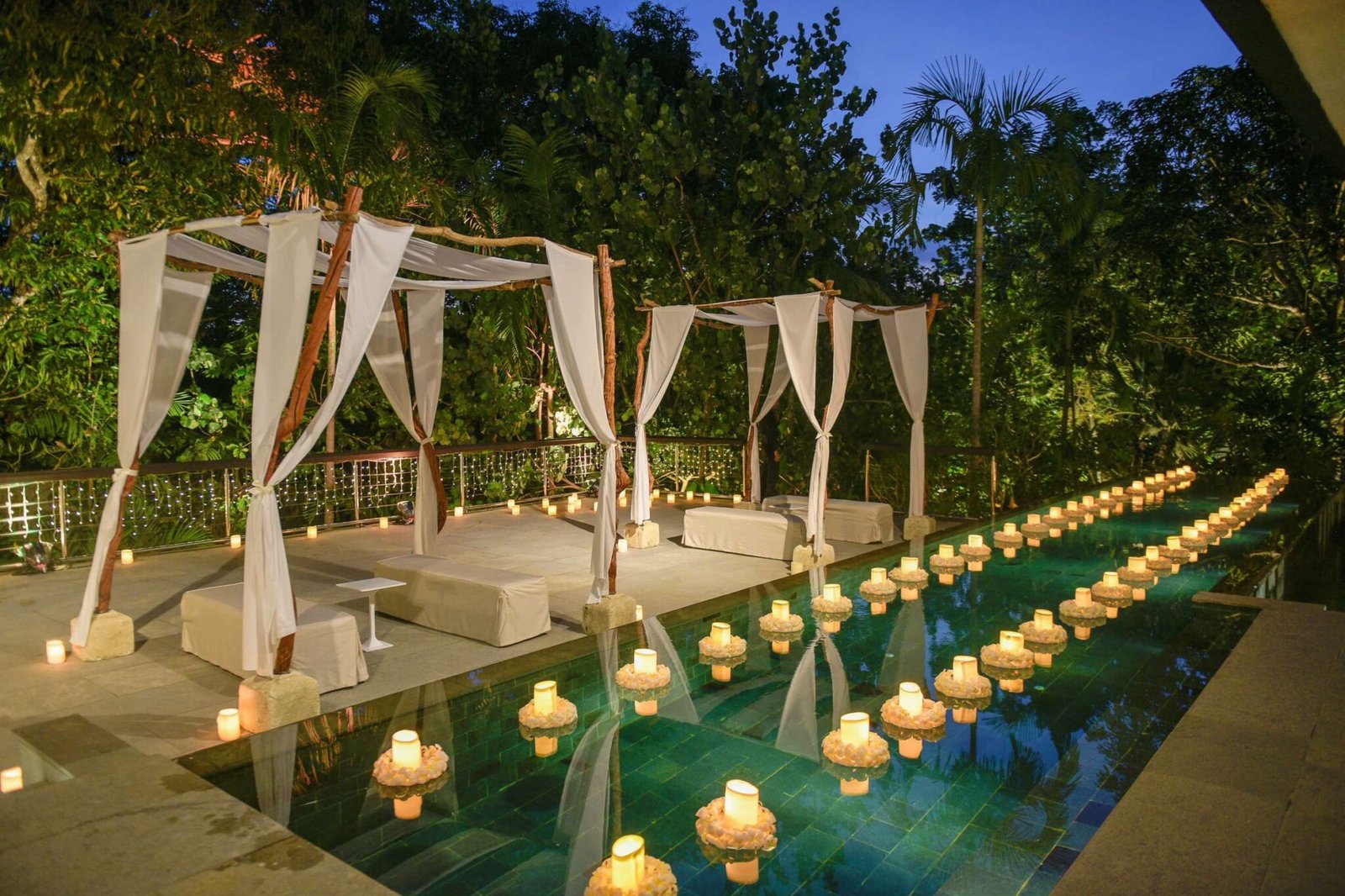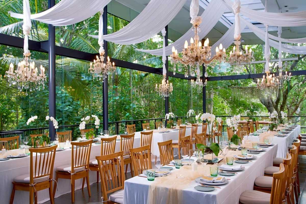 A Forest Hideaway for Your Ceremony & Reception Surrounded by lush tropical greenery, Moonlight Garden is a tranquil garden wedding venue designed for both ceremonies and receptions. Sunlight filters through the trees, casting golden patterns along the stone aisle, while soft breezes bring a sense of calm. As night falls, twinkling fairy lights and candlelit pathways transform the garden into an enchanting setting, perfect for a romantic outdoor celebration. Whether exchanging vows beneath the open sky or gathering for a reception under the stars, Moonlight Garden offers a naturally beautiful and unforgettable backdrop for your special day